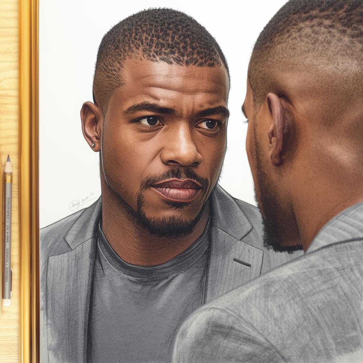 In the mirror stood a version of himself that frightened him. His hairline was immaculate. Shaped like an isosceles miracle. Angles so sharp they could cut disrespect in half. A faint glow pulsed around him, like divinity in 4K. He was boardroom Bruce Leroy.